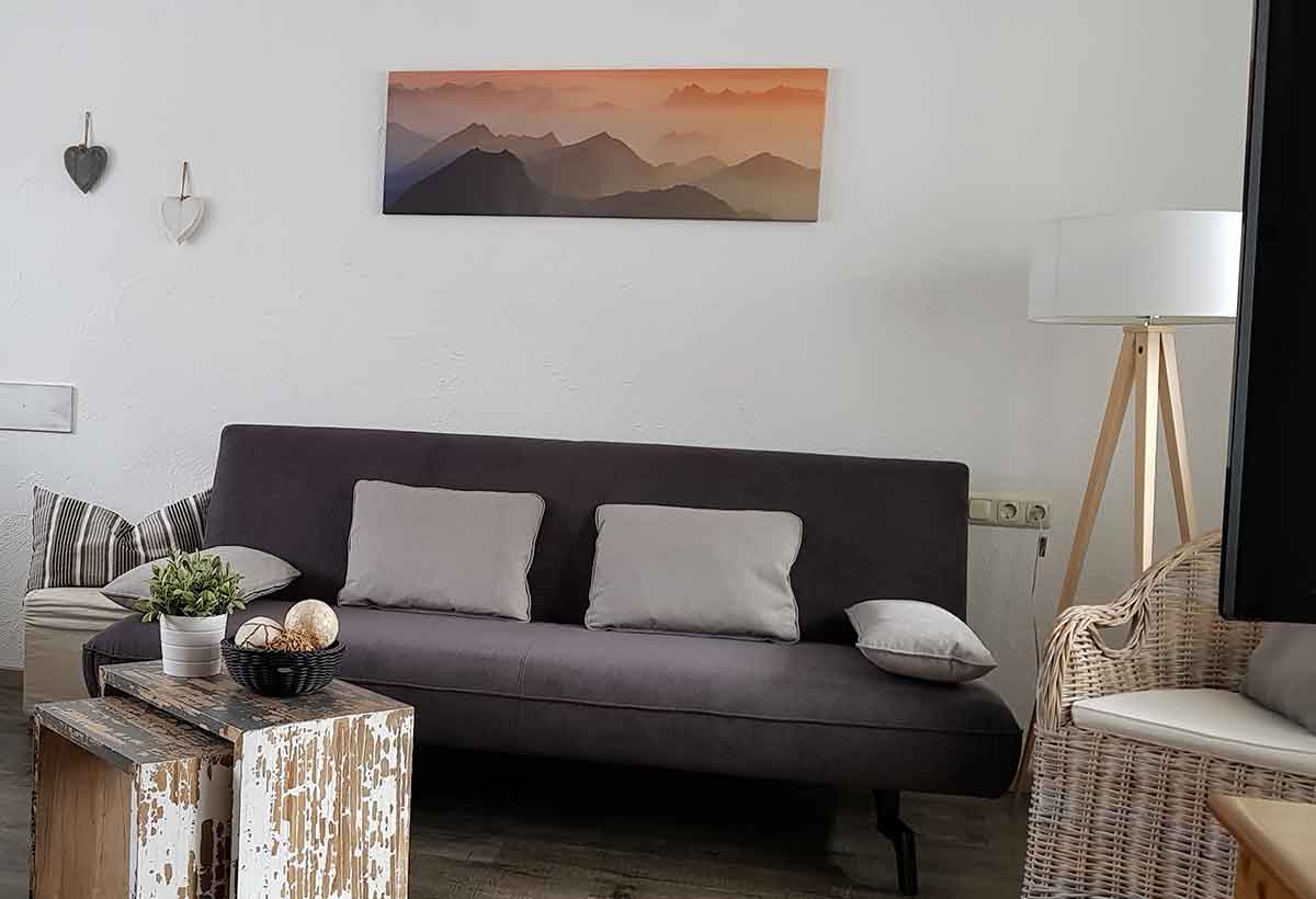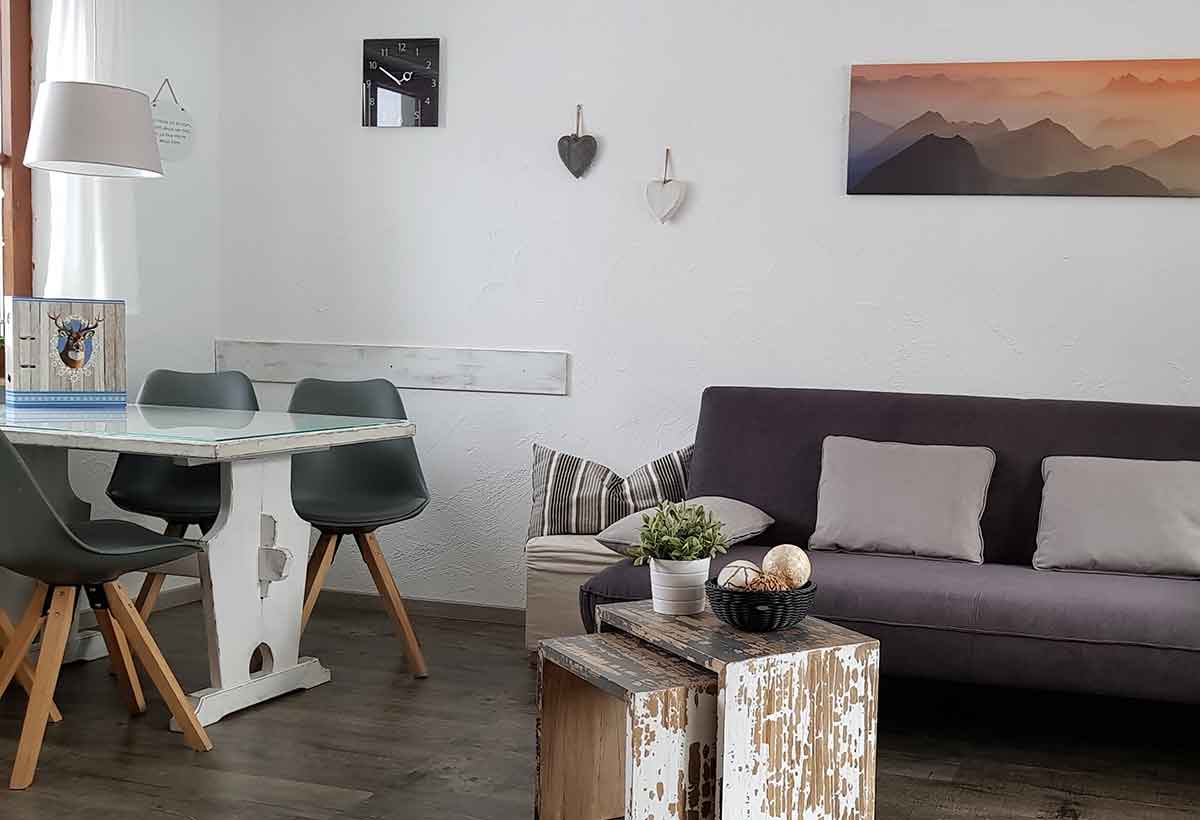 Unsere helle Ferienwohnung Bergruh stimmt Sie gleich auf Ihren Urlaub ein.Der Wohnraum ist modern und gemütlich eingerichtet. Sie finden hier eine komfortable Sitzecke mit Schlafcouch, die Platz für eine weitere Person bietet.