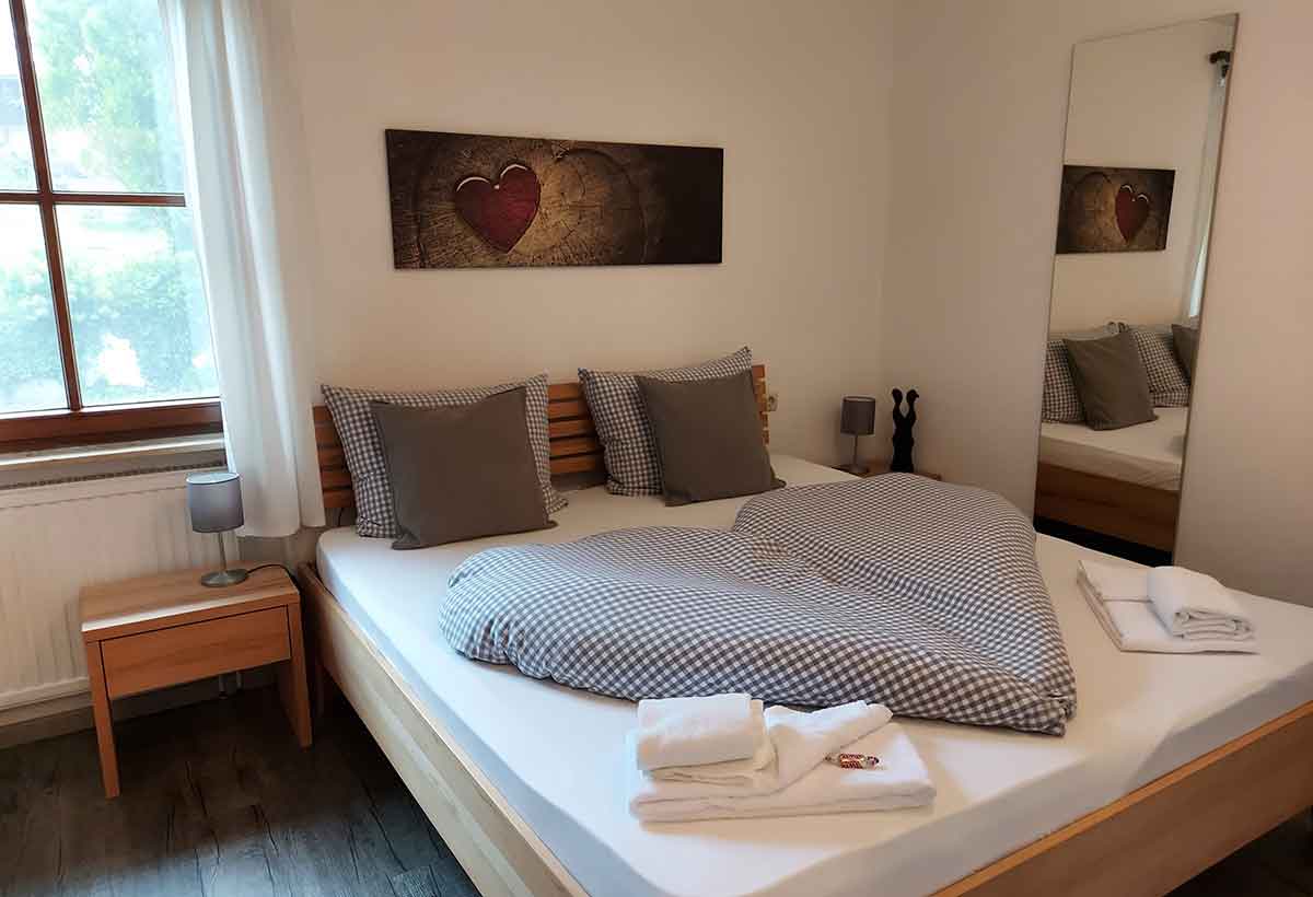 Die Ferienwohnung verfügt über zwei Schlafzimmer: ein Elternschlafzimmer mit Doppelbett sowie ein Jugendzimmer mit Etagenbett. Beide Zimmer sind freundlich gestaltet und bieten ausreichend Platz für Ihre Urlaubsgarderobe.